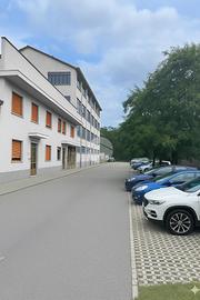 Fabbricato elevato a quattro piani fuori terra, ognuno di 500 mq, all'esterno, un'ampia area parcheggio con 40 posti auto assicura comodità per dipendenti e visitatori.