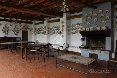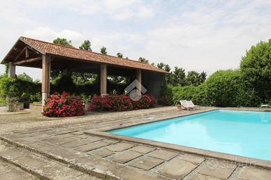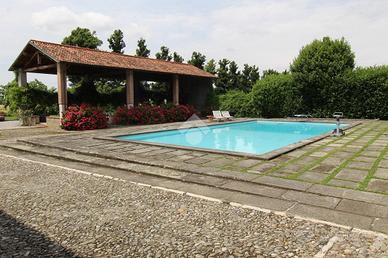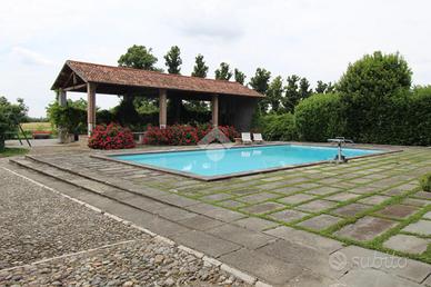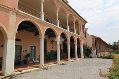 Ad ovest, in continuità con l'edificio principale vi è un porticato aperto sul cortile interno di 180mq, dotato di piscina e locali di servizio.