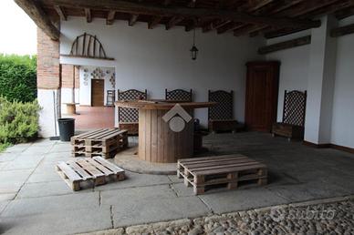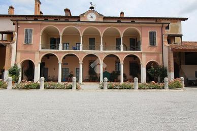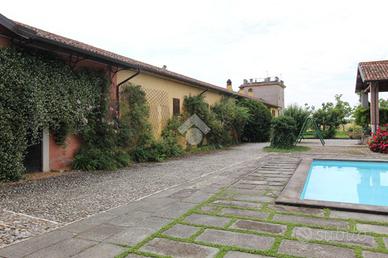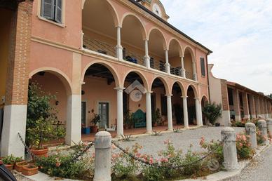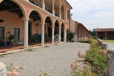Ad ovest, in continuità con l'edificio principale vi è un porticato aperto sul cortile interno di 180mq, dotato di piscina e locali di servizio.