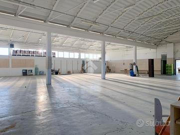 Il capannone si estende per una superficie totale di 800 mq circa; ha una forma regolare, diversi accessi ed è corredato da una struttura che anticipa il suo accesso di una settantina di mq circa dove oggi si disloca un negozio con ampia vetrina e un bagno.