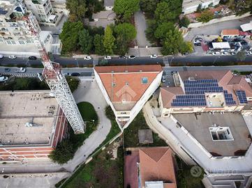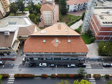 Lo stabile è composta da un locale commerciale Cat. D/8 al piano terra di 470mq con annesso ufficio al piano primo; un locale al piano terra Cat. C/1con locale deposito al piano primo di mq 46, un locale Cat. C/1 al piano secondo di mq 483 e un locale al piano terzo mansardato Cat. C/2 di 345mq.