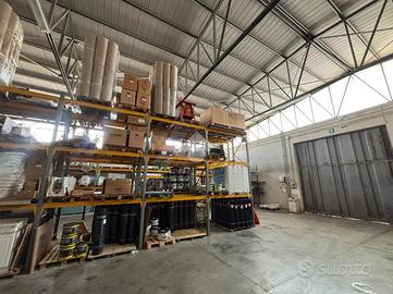 L'immobile si sviluppa su più livelli per una superficie coperta complessiva di circa 1.100 mq. Il piano terra, di circa 900 mq, ospita il fulcro operativo: l'area capannone, con altezza sotto trave di 5 metri, è dotata di impianto elettrico trifase 380V, scaffalature e soppalco rialzato di 56 mq con altezza di 3 metri, ideale per ottimizzare lo stoccaggio.