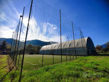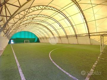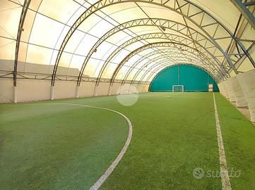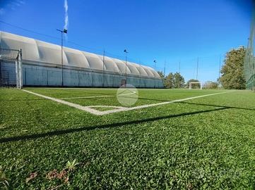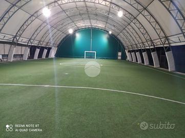 San Giorgio a Liri (Fr), Via Crocelle. L'agenzia Tecnorete propone in esclusiva la vendita di un impianto sportivo, della superficie totale di 5.000 mq tra coperto e scoperto, tutti sviluppati su terreno ad uso sportivo in categoria D/6. Dalla Via Crocelle si accede con cancello automatico al piazzale cementato, con numerosi posti auto. Dal portico di circa 70 mq, si accede al fabbricato che è stato edificato nel 2006 ed adibito a spogliatoi ed uffici, della superficie di circa 144 mq, ed è composto da 4 uffici, 2 servizi, 1 cucinotto, e 1 ripostiglio, il tutto con ingresso unico, mentre i 4 spogliatoi con docce, oltre a 2 servizi, sala macchine, e piccolo ufficio hanno tutti ingresso separato. La struttura dell'immobile è in cemento armato con copertura in pannelli coibentati. Dal portico si accede ad entrambi i campi con manto sintetico delle dimensioni di 20x40, realizzati con materiali di ottima qualità, e lo stato in cui si trovano al momento è pressoché ottimo. Uno dei campi è stato costruito nel 2012 e presenta una tensostruttura ad arco in acciaio e pvc apribile su tutti i lati; il campo aperto è stato realizzato nel 2010, il cui terreno di gioco è delimitato da apposita recinzione con rete di protezione alta circa 8 mt, entrambi i campi sono dotati di illuminazione. L'impianto dispone di una proprietà di circa 2.270 mq con destinazione d'uso sportiva D/06.