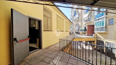 Zona Pozzo Strada, corso Brunelleschi, tra l'ospedale Martini e il Parco Ruffini, basso fabbricato interno cortile di 800 mq ca. ad uso ufficio/esposizione e magazzino. Con comodo ingresso pedonale e carraio senza barriere architettoniche, il fabbricato è stato ristrutturato ad uso ufficio/esposizione di rappresentanza e magazzino. L'androne carraio principale si sdoppia nel cortile tra uffici e magazzino. Gli uffici di ca. 450 mq sono composti da un ampio vano open space centrale che da accesso alle 8 ampie stanze finestrate divise con pareti mobili vetrate. Il pavimento galleggiante rende agevole il passaggio degli impianti. I grandi lucernari di cui uno apribile rendono lo spazio centrale molto luminoso, i soffitti sono stati ribassati e controsoffitatti a 3 mt ca. I doppi servizi, di cui uno adattabile per i disabili sono entrambi finestrati. Il magazzino di ca. 350mq è composto da un ampio open space, antibagno e bagno, comodo per l'accesso di mezzi di medie piccole dimensioni Gli infissi sono tutti coi doppi vetri e l'impianto di riscaldamento e di condizionamento sono autonomi e completi di termoconvettori ad aria. Esternamente vi è un terrazzo coperto da tettoia. Impiantistica generale a norma e certificata. L'immobile è adatto a poliambulatori e studi medici grazie al recente progetto di fattibilità visionabile in fase di trattativa.