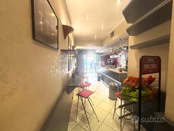 Il locale dispone di una vetrina su strada che garantisce un'eccellente visibilità. Internamente si sviluppa su una superficie di circa 40 mq e si compone di un unico ambiente con sala, bancone bar, un laboratorio attrezzato per la preparazione di gastronomia fredda, un servizio igienico e un comodo magazzino.