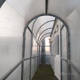 Container, prefabbricato per chiosco, bar, ufficio, per uso commerciale, con 3 bagni di cui uno per disabili, anti bagno spogliatoio; dotato di impianto elettrico, e copertura/tunnel in plexiglass finestrata, tutto a norma.