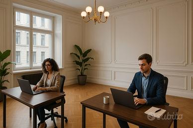 L'ambiente, estremamente luminoso e curato nei dettagli, è ideale per professionisti, consulenti, architetti, designer o giovani imprenditori che desiderano lavorare in un contesto raffinato e condividere lo spazio con altre realtà professionali di livello.