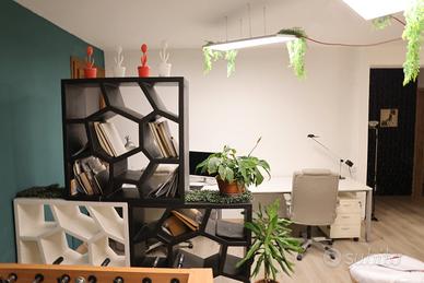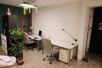 Disponiamo di 3 postazioni libere in open space per la condivisione dello spazio. L'ufficio si trova al primo piano e dispone di piccola cucina, bagno, tavolo riunioni. Nel prezzo è incluso riscaldamento, linea internet, energia elettrica e pulizia una volta al mese.