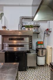 - ampio ambiente con frigoriferi, zona cottura con 4 piastre ad induzione, forno ultima generazione unox, forno per pizze, friggitrice, zona lavaggio con lavastoviglie