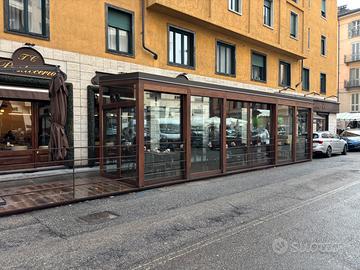 La struttura è composta da 6 vetrine apribili totalmente per il periodo estivo , una porta automatica , totalmente con pavimentazione come da foto. Refrigerato per l'estate e pompa calore inverno .