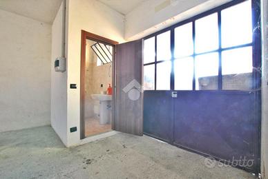 - Accesso: portone metallico a battente, con inserti vetrati superiori, che garantiscono luminosità naturale;