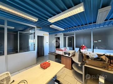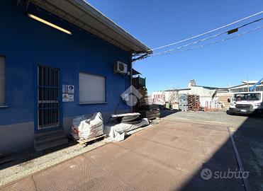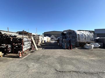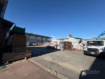 VENDITA - Sito in STRADA DEL FRANCESE che misura una superficie recintata esclusiva di ma 1952,00 completamente pavimentata che contiene tettoie con struttura metallica e copertura con lamiere grecate per una superficie di mq 225,00, locale deposito della superficie di ma 60,00 con struttura in muratura e copertura piana con solaio in c.a. debitamente impermeabilizzato ,locale ancora in muratura e copertura piana in c.a. impermeabilizzato adibito ad officina della superficie di mq 54,00, edificio ad un piano fuori terra leggermente rialzato adibito ad uffici, realizzato in muratura e con copertura a doppia falda in lamiera grecata che ospita quattro uffici, servizi igienici e ripostigli, con una superficie di mq 121,00. Porzione del cortile locata ad attività di deposito materiale edile con contratto 6+6 con scadenza il 30.09.2029 al canone mensile di euro 900,00 oltre iva.