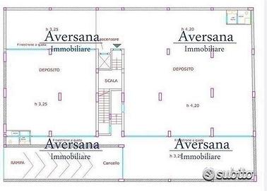 Deposito seminterrato di circa 540 mq con altezza di 4,20 con bagno.