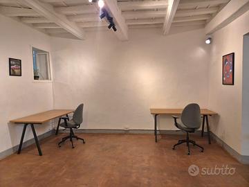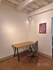 Un desk individuale in un open space condiviso con altre 3 persone. Oltre allo spazio lavoro ce' una stanza con tavolo da pranzo, una cucina e bagno con doccia.
