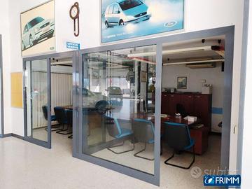 Il secondo locale, precedentemente utilizzato come salone espositivo, presenta ampio ambiente, tre uffici, doppio bagno e centrale termica, per circa 700 mq totali.