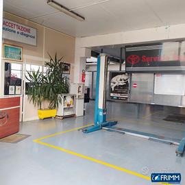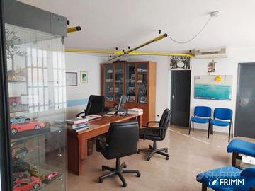 Il primo fabbricato si sviluppa su due livelli per un totale di circa 1600 mq, e si compone di ampio ambiente adibito attualmente ad officina, doppio magazzino, rimessa, uffici, due servizi e spogliatoi più al piano primo di ampio ambiente con accesso sia dall'interno che dall'esterno, anche con mezzi, (precedentemente utilizzato come rimessa auto quindi con solaio predisposto al sostegno di elevati carichi) e terrazzo.
