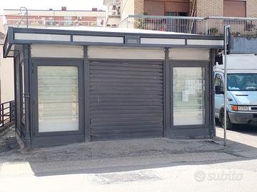 Vendesi struttura più licenza di edicola di 21mq sita in viale Francesco Crucioli, zona di alto passaggio, fronte futura casa dello studente, con ampio parcheggio e vicino ad altre attività, fornita di bagno chimico, climatizzatore, basculante elettrica.