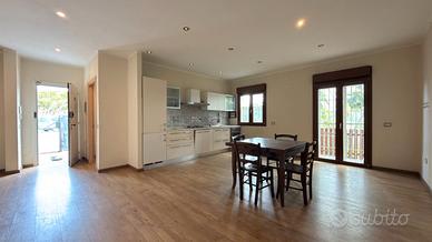 oPrimo ingresso, nel quale si trova l'appartamento residenziale di circa 90 m² ,completamente ristrutturato nel 2020, composto da un ampio e luminoso salone con angolo cottura, due ampie camere matrimoniali e un bagno con vasca.