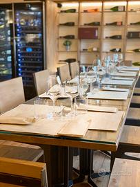 Il locale che si presenta in ottimo stato, è stato completamente ristrutturato 3 anni fa (inclusi gli impianti elettrico ed idraulico) e viene venduto completamente arredato, compresi gli elettrodomestici di ultimissima generazione, tra cui: frigoriferi sotto banco, lavastoviglie, lavabicchieri con sistema di osmosi, vasca per il ghiaccio con illuminazione, due cantine per il vino, sistema di riscaldamento e raffrescamento ad aria e cassa con sistema operativo integrato.