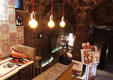 Il locale è stato ricavato da una cantina scavata nel tufo, con due bagni (clienti e servizio), con ampia piazza di 100m quadri all'esterno. Locale nel centro storico di Vasanello (VT)