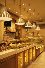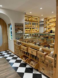 Al piano terra, di mq 26 c. a. veniamo accolti da un meraviglioso bancone dotato di vetrina con laboratorio a vista completamente stigliato.
