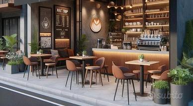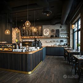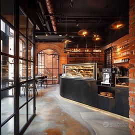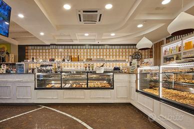 c. a. disposti su un unico livello, dove troviamo un ampio bancone caffetteria/gastronomia con tre vetrine caldo/freddo,macchina del caffè ed una moderna