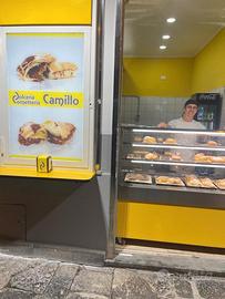 Si cede attività di take away pieno centro di via Roma ad Aversa. Attualmente aperta ed operativa come cornetteria. Creperia pasticceria grafferia. Trasormabile in pizzetteria. Incluso nel prezzo in acciaio: 1 forno 3 teglie 60x40 220v 1 forno 4 teglie 60x40 380v 1 forno microonde 1200w 1 lievitatore 12 teglie 60x40 1 portateglie 14 teglie 1 cappa aspir. predisp. carb/att. 1 tavolo da lavoro 140x70 1 lavello 40x40 1 mensola a muro 120x30 1 vetrina bibite 400litri 1 vetrina mobile calda 3 ripiani 1 mobile cassa con ripiani 1 congelatore pozzetto 700litri 1 congelatore verticale 400 litri 1 mobile alto 300x100 7 ripiani 15 teglie 60x40 microforate 2 armadietti da lavoratori 1 tenda sole elettrica 4metri 1 tenda frangivento trasparente 1 PC touch con programma vendita tanti altri accessori PREZZO non TRATTABILE perché ribassato per realizzo. Si rilasciano informazioni di persona previo appuntamento.
