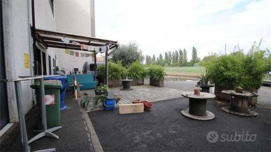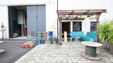 Area esterna comune con posti auto, entrando nel capannone vi si accede tramite un portone industriale o tramite porta pedonale: quest'ultima di accesso ad una zona bar e da qui all'ampio spazio destinato all'attività sportiva.