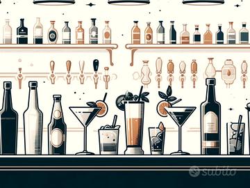 L'area adibita alla vendita è fornita di tutta l'attrezzatura necessaria per lo svolgimento dell'attività, tra cui scaffalatura, sgabelli, bancone, bancone espositore, espositore refrigerato, banco a pozzetto per gelato, macchina del caffè, macchine per granite, piastra per panini, forno a microonde, registratore di cassa e tutto il necessario per la somministrazione di alimenti e bevande. L'area per la consumazione, dotata di circa 15 coperti, è fornita di televisione a parete, tavolini e sedie, ed è predisposta per lo svolgimento di eventuale centro scommesse ad integrazione dell'attività principale. A seguire è presente una piccola e riservata sala slot con macchinette concesse conto terzi.