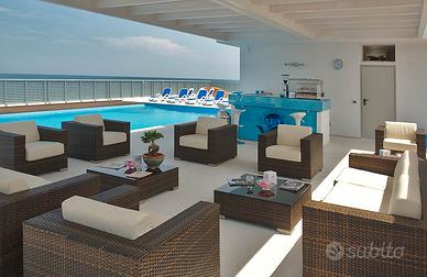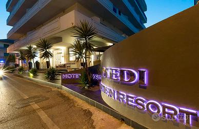 A circa 20 metri dal mare elegante struttura ricettiva 3 stelle con licenze annuali di Albergo ed RTA con superficie coperta di ca mq 2.700, 550mq a piano.