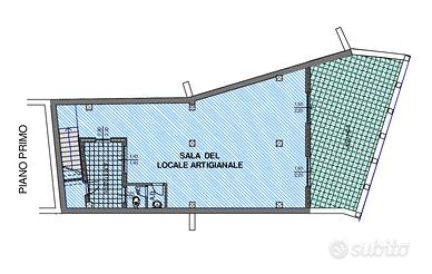 IL LOCALE ARTIGIANALE AL PIANO TERRA HA UNA SUPERFICIE DI mq. 74, AL PIANO PRIMO LA SALA E' DI mq.88, COMPRENDE LA SCALA E UN PICCOLO BAGNO, COMPLETA IL PIANO UNA BELLA VERANDA DI mq. 34 CHE AFFACCIA SULLA PIAZZA, UTILIZZATA COME SALA ALL'APERTO E CHE CON UNA PERGOTENDA E' USUFRUIBILE ANCHE NELLA STAGIONE INVERNALE OSPITANDO PIU' DI 30 POSTI .