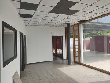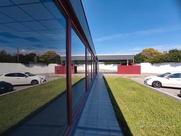In aggiunta, il locale dispone di servizi igienici e locali deposito per ulteriori 40 mq, offrendo praticità e funzionalità. La presenza di una tettoia di circa 40 mq e un'ampia area esterna asfaltata permette di sfruttare al meglio lo spazio esterno, ideale per eventi o esposizioni temporanee. Comodi posti auto sono disponibili per clienti e dipendenti, assicurando un facile accesso.