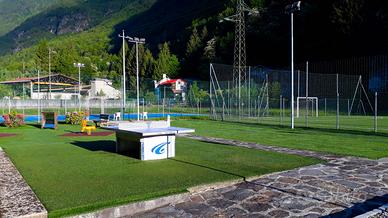 *Terreno di mq. 4700 con campo da tennis in erba sintetica, campo da calcetto in erba sintetica, tavolo ping pong, parco giochi bimbi, dehors.