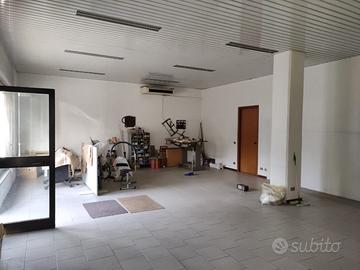 Vendo immobile composto da un locale unico con superficie di 75 mq con 2 vetrine e doppio ingresso, affacciate su un ampio parcheggio, oltre a servizio, un magazzino annesso con superficie di 100 mq con n. 2 portoni con l'altezza di 4 metri che danno su un cortile privato da cui si accede tramite cancello temporizzato. Riscaldamento autonomo e spese condominiali molto contenute.