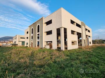Su Strada Provinciale servitissima, nuova realizzazione, porzioni di capannone artigianale-industriale mq.950 c. cadauna disposte su tre livelli con rispettive annesse corti esclusive di mq.1400 c. per ciascuna unità. Completamente da rifinire. Tutti i servizi. (parte della superficie può essere destinata ad uso commerciale) . Euro 650.000,00 a porzione. Cod.181A