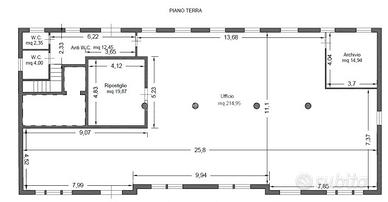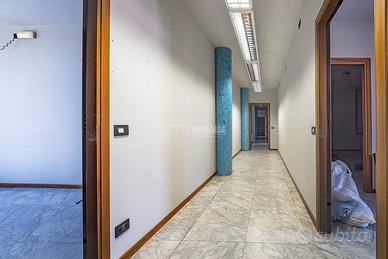 Gli uffici al primo piano, ampi e luminosi, si presentano come la soluzione ideale per ospitare attività commerciali e studi professionali di vario genere. Ogni ambiente è dotato di riscaldamento autonomo e aria condizionata, assicurando un clima accogliente e confortevole per dipendenti e clienti.