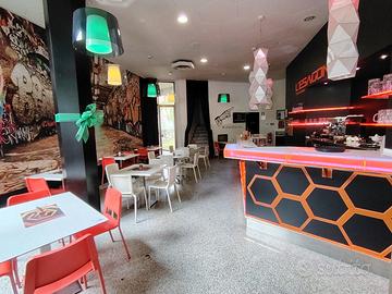 Al piano primo: Bar compreso di secondo bancone, ampio terrazzo, magazzino e servizi per il personale