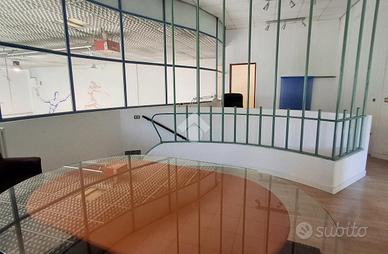 Il Primo piano di circa 90 mq., a cui si accede da una comoda scala lineare in muratura, è composto da un ampio ufficio direzionale con affaccio sul laboratorio sottostante, altri due studi e un locale uso cucina/relax.