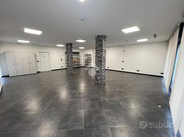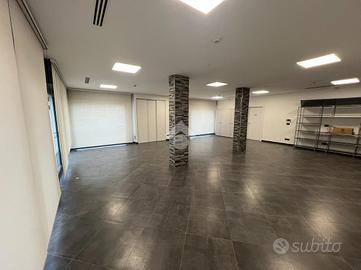 L'immobile è disposto interamente al piano terra e dispone di sette vetrine affacciate sull'area cortiliva di pertinenza. Si compone di un'area di 115mq circa, ristrutturata e dotata di finiture estetiche e impiantistiche di alto livello, ideale ad uso ufficio. Inoltre è presente una zona magazzino di oltre 80 mq. La conformazione dell'immobile lo rende pronto ad accogliere attività in ambito artigianale, ma è ideale anche ad uso showroom o uffici commerciali.