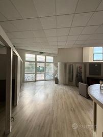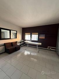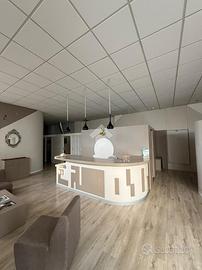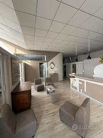 Il piano terra è su pianta rettangolare di circa 180 mq, si accede tramite ampia porta a vtri composta da sala di attesa e le cabine allestite in cartongesso due servizi igienici con antibagno e deposito di circa 26 mq.