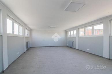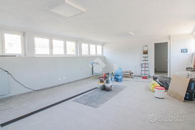 La soluzione proposta in affitto ha una superficie complessiva di 150 metri quadrati, raggiunge un'altezza di 2,75 metri circa ed è disposta su due piani di un edificio di due livelli; esternamente possiede uno spazio di circa 200 metri quadrati locato in comune, completo di un passo carraio. La struttura è servita dall'impianto elettrico, d'illuminazione e di riscaldamento, possiede inoltre una predisposizione per l'impianto di condizionamento. Completa la soluzione un servizio igienico privato con annesse comode docce. La proprietà risulta essere recintata esternamente e in ottime condizioni data la completa recente ristrutturazione dell'immobile avvenuta nell'anno 2025.