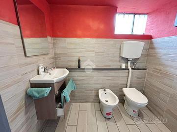 Il laboratorio è dotato di un bagno, garantendo praticità e comfort per chi vi opera.