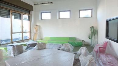 Al piano interrato, collegato da scala interna, si apre un magazzino di oltre 400 mq con altezze generose e accesso diretto al passo carraio tramite portone scorrevole, comodo per carico/scarico merci anche con furgoni e piccoli camion.