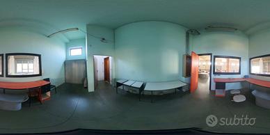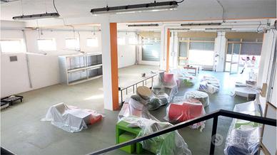 Al piano strada troviamo un locale a pianta aperta di circa 360 mq, luminoso grazie a tre grandi vetrate su strada, e dotato di uffici, spogliatoi, mensa, doppi servizi e un ampio soppalco interno di circa 60 mq perfetto per deposito materiali o attrezzature.