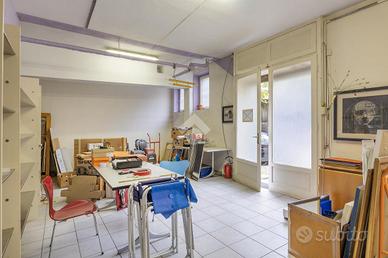 Via Taormina - Ampio laboratorio di 156 mq. ca. al piano seminterrato. L'immobile si trova in un contesto civile anni '50. L'accesso all'immobile avviene sia tramite l'ingresso pedonale del condominio, sia dal cortile con ampio parcheggio per eventuale carico/scarico. Il laboratorio si presenta con un grande open space, due locali attualmente adibiti ad ufficio, bagno finestrato con antibagno in buone condizioni, con porte originali anni '50 con altezza dei soffitti di mt. 3,15. L'immobile gode di un ottimo riscontro di luce grazie a finestre in tutti i locali e a un esposizione est-ovest. Ottima la posizione con collegamenti a tangenziali e la vicinanza di mezzi pubblici (fermata MM 5 Istria - Marche e MM 3 Maciacchini oltre i mezzi di superficie).