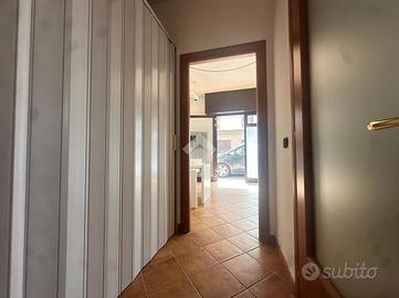 Un'ampia vetrina illumina lo spazio principale, mentre un secondo accesso facilita la gestione logistica.