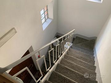 Il laboratorio è suddiviso in quattro locali di cui uno con bagno, disimpegno e ulteriore bagno con balcone.