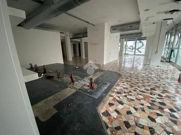 Varcata la porta d'entrata automatizzata scorrevole troviamo un open space luminoso grazie alle vetrate lungo tutto il perimetro dell'immobile.