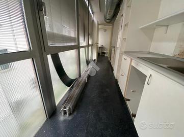 Varcata la porta d'entrata automatizzata scorrevole troviamo un open space luminoso grazie alle vetrate lungo tutto il perimetro dell'immobile.