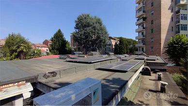 Nelle vicinanze dell'ospedale San Giovanni Bosco, proponiamo in vendita un locale commerciale ad uso laboratorio o magazzino, sito al piano terra all'interno del cortile di via Tartini 10/15. Si tratta di un locale diviso in una parte di laboratorio a pianta aperta, due locali ufficio, un area adibita ad ingresso / reception, una zona magazzino o possibile parcheggio mezzi, con doppi servizi, il locale caldaia esterno ed una tettoia come ulteriore ricovero merci o materiali. L'immobile è dotato di riscaldamento diviso in parte con caldaia a condensazione a metano, in parte a pompa di calore. Sul tetto sono installati pannelli fotovoltaici che producono energia per consumo diretto e vendita alla rete , con contributi economici del valore di 30.000 circa per un periodo di 9 anni residui. I locali sono molto luminosi grazie alla presenza di abbaini e lucernari, oltre alle finestre poste sui muri perimetrali. L'immobile è anche dotato di un impianto di aspirazione a carboni attivi. Completa l'offerta una parte di cortile, antistante il fabbricato, per parcheggi temporanei per clienti o per mezzi propri.
